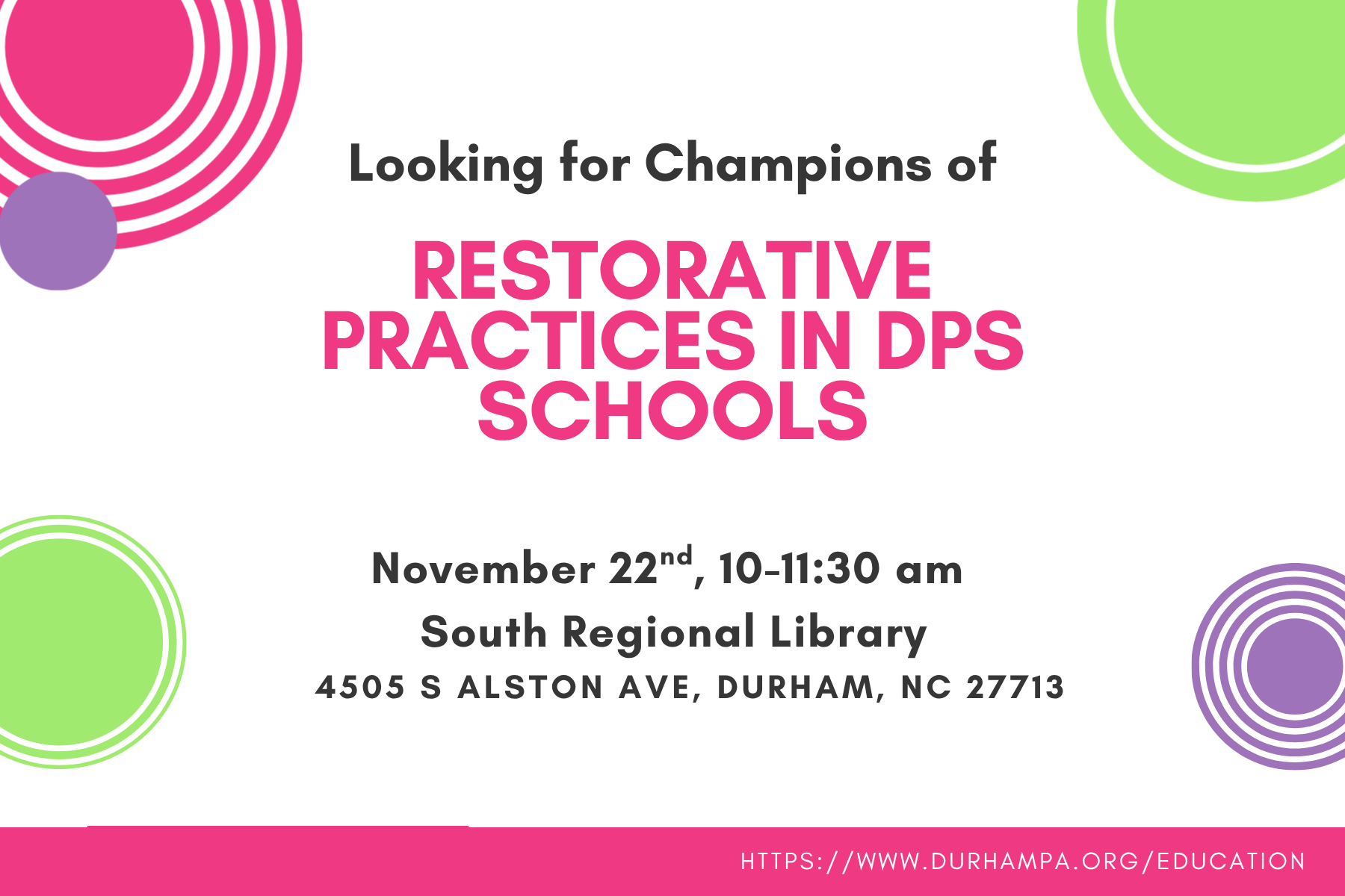 Join parents, teachers and students to learn about Restorative Practices in DPS schools